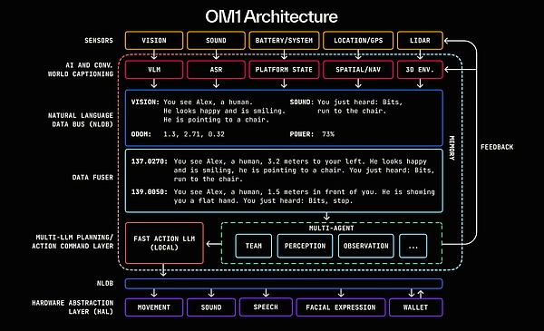 OM1:构建在 ROS2之上的模块化开源 AI 智能体运行时(AI Runtime Layer),用于编排感知、规划与动作管线,服务于数字与实体机器人;