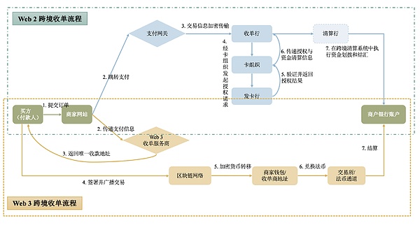 如下图所示,传统Web2的收单流程还是紧密围绕银行卡组织、收单行、清算行等中心化金融机构构建,成称为“账户制”。而在Web3世界中,这一流程被彻底推翻: